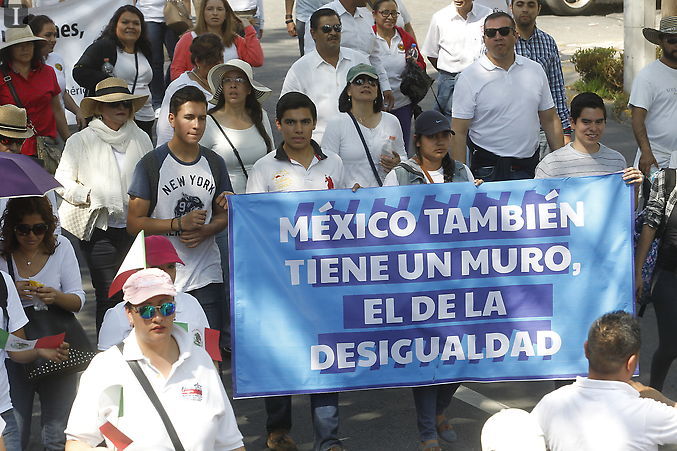Más de 900 personas marcharon por las calles para mostrar su rechazo al muro que pretende construir el presidente Trump, además exigieron al gobierno mexicano defienda a los connacionales que radica en aquel país ante la violación a sus derechos humanos.