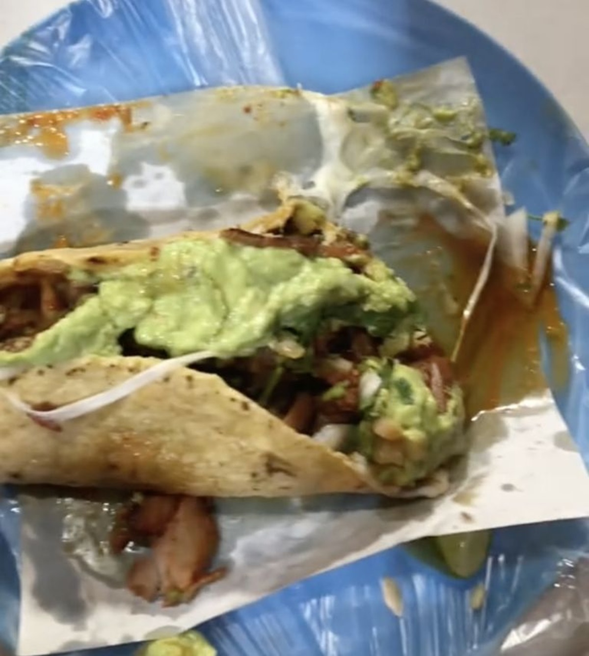 Juan Gabriel “apareció” justo un lado del taco que parece ser de pastor y estaba lleno de guacamole. La figura del cantante se formó entre la grasa del taco y el agua de los vegetales y no parece que por debajo haya alguna foto del cantante o algo similar que hiciera que la silueta se filtrara, lo que hizo todavía más real el hecho