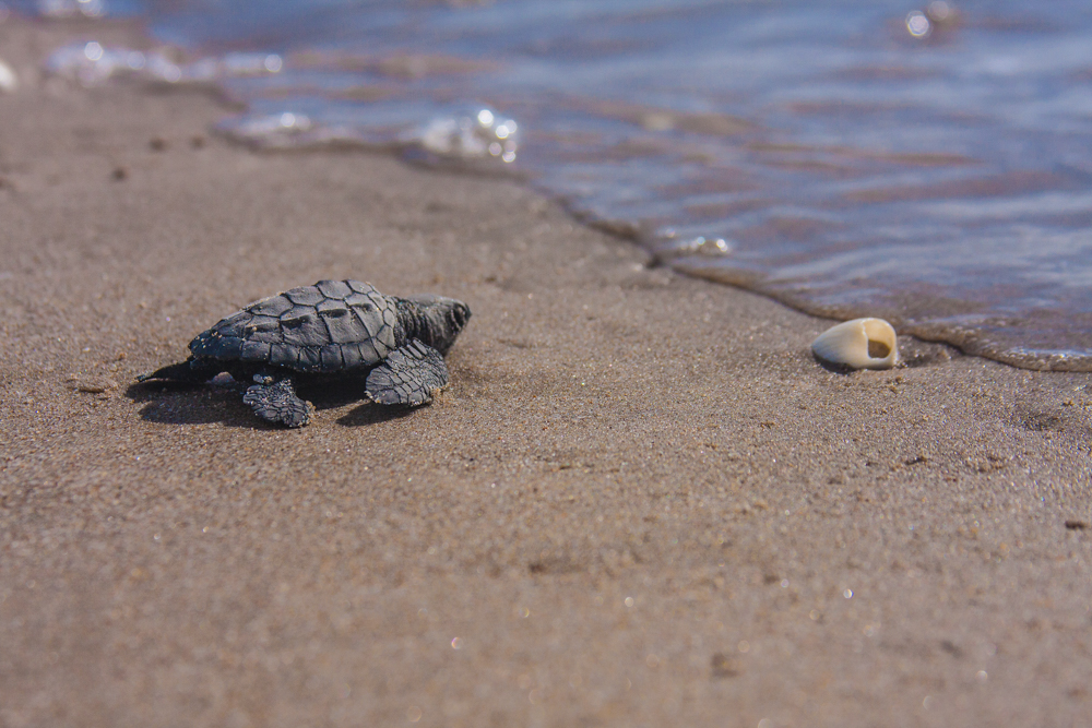 Las crías cuentan con un reservorio alimenticio propio en su saco vitelino, que les permite alimentarse hasta tres días mientras emprenden su camino hacia el mar.