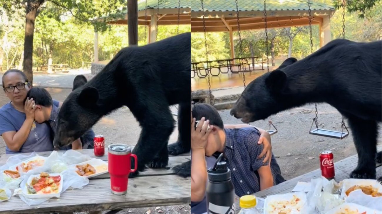 Una familia disfrutaba en el Parque Chipinque, San Pedro Garza García en Nuevo León, cuando un oso se acercó y devoró su comida.