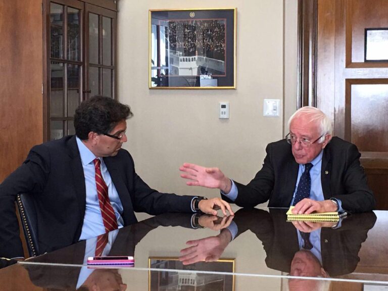 Ríos Piter y Bernie Sanders proponen aumento al salario mínimo y libre movilidad