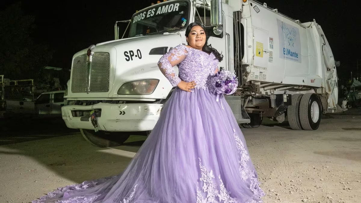 Una quinceañera quiso demostrar el amor a su papá al pedir que su sesión fotográfica tuviera como escenario el camión de basura en donde él trabaja.