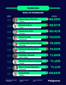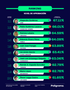 Además, cabe señalar que la alcaldesa de extracción panista es la segunda mujer mejor rankeada por Poligrama, solo por detrás de la alcaldesa de León, Guanajuato, Alejandra Gutiérrez, quien la superó por un escaso 2.52%.