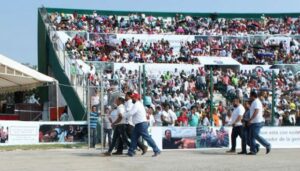 Tuxtla Gutiérrez, 24 Abril.- Mujeres beneficiadas del programa federal de Prospera de Sedesol, fueron condicionadas a asistir al informe del senador priísta Roberto Albores, que tuvo lugar en el Estadio Zoque Víctor Manuel Reyna, mismo evento al que acudieron reporteros que se percatarón de este abuso y que posteriormente fueron arrestados por «alterar el orden público».