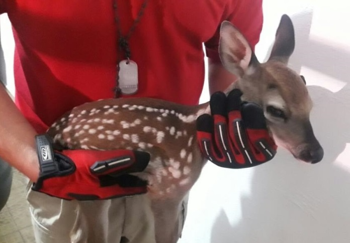 Ciudad de México, 3 Agosto.- Un pequeño venado, al parecer recién nacido, fue rescatado por vecinos del sector Cumbres en Monterrey.
