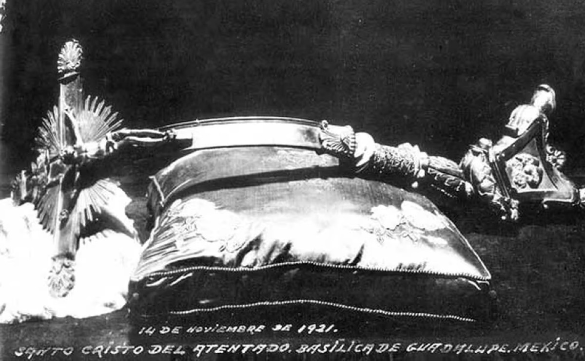 El objeto que se llevó todo el impacto de la dinamita fue un Cristo de bronce de 34 kilos y la figura religiosa se dobló tras el impacto de la explosión. En la actualidad aún se puede observar en una vitrina de la nueva Basílica de Guadalupe. Cabe mencionar que es por esto que a dicho suceso se le conoce como “Cristo del Atentado”.