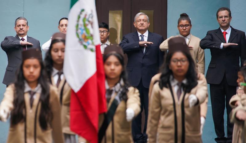 Anunció Andrés Manuel en la ceremonia cívica por el inicio escolar 2019 – 2020 en la Secundaria Técnica número 63 Melchor Ocampo.