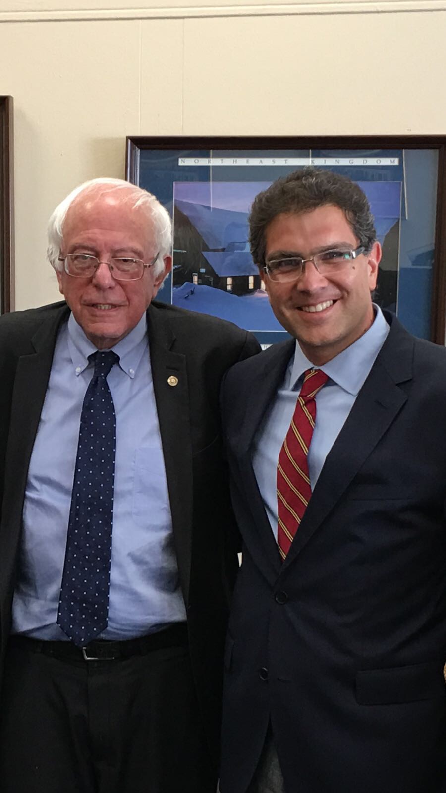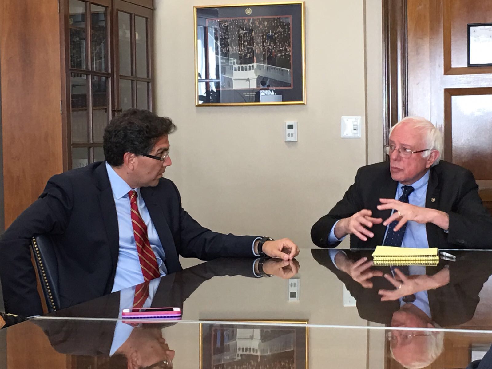 Washington, D.C, 3 Mayo.- Este día el senador Armando Ríos Piter se reunió con el senador demócrata Bernie Sanders, para dar seguimiento a la propuesta de elevar los salarios mínimos en sus respectivos países; con el fin de articular trabajos y homologar las iniciativas presentadas en ambos senados.
