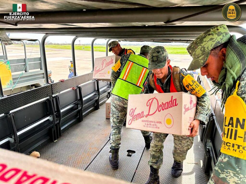 Los vehículos militares trajeron 33 toneladas de alimentos y artículos de primera necesidad, en las cajas que serán repartidas se encuentra: carne, atún, sardinas, frijoles, ensalada, leche en polvo, amaranto, durazno.