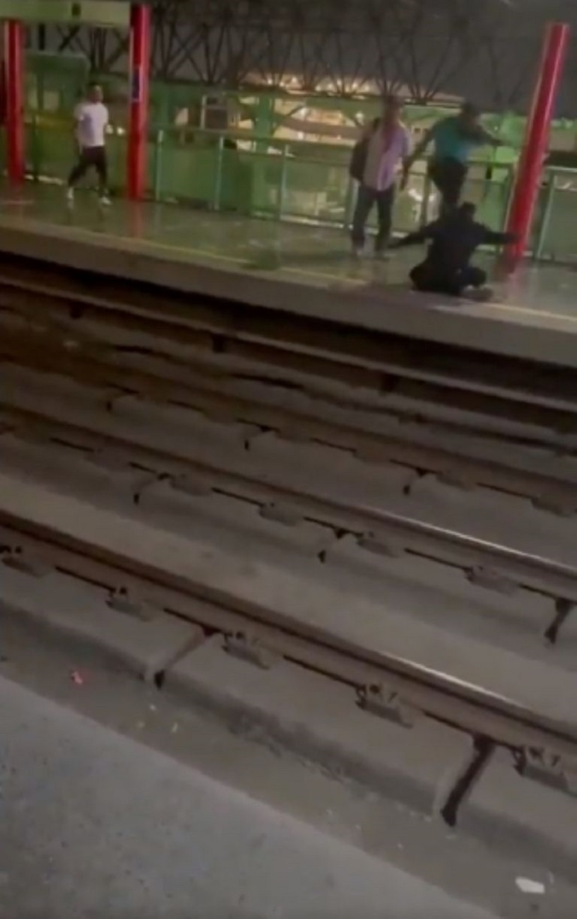 En las imágenes se ve que el hombre cayó directo al cemento de enmedio de las vías y se golpeó directamente en la cara, situación que lo dejó inconsciente sin poder hacer ningún otro movimiento, mientras que los dos agresores se retiraron del andén como si nada hubiera pasado.