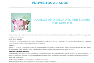 Para lograrlo, Villa Atl ha comenzado a tejer redes de apoyo y alianzas estratégicas con organizaciones gubernamentales, empresas privadas y organizaciones sociales, para implementar acciones concretas que ayuden a preservar a la especie de este anfibio mexicano y garantizar la conservación de su ecosistema.
