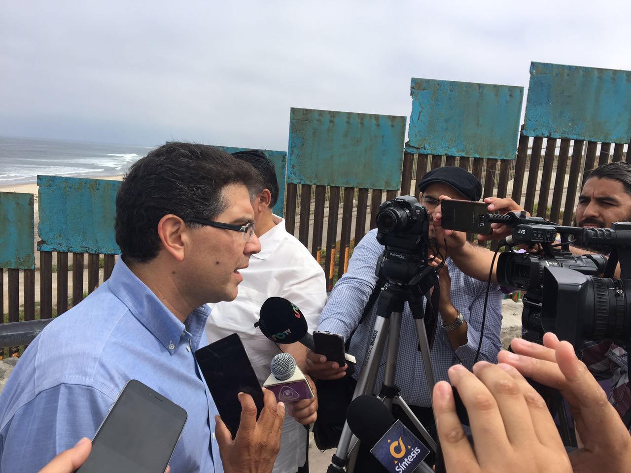En este encuentro con los medios de comunicación, justo al lado del muro fronterizo del límite entre México y Estados Unidos, el senador independiente habló sobre sus iniciativas que ha presentado en el Senado de la República, y que tienen que ver con proteger la industria cinematográfica mexicana, y el garantizar el incremento de salarios de la fuerza trabajadora en ambos lados de la frontera, en la renegociación del Tratado de Libre Comercio.