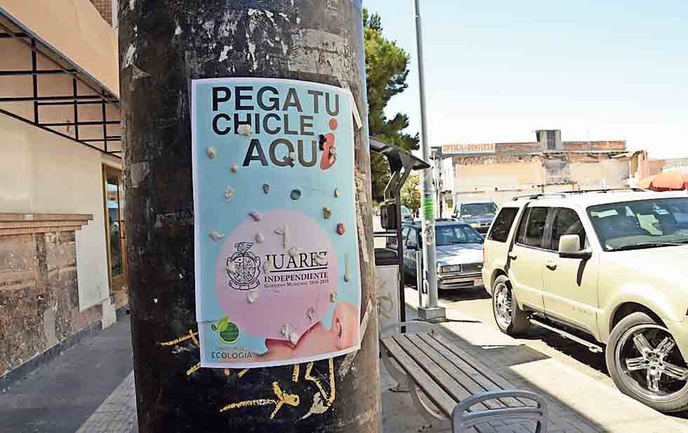 Ciudad Juárez, 21 Julio.- «Pega tu Chicle» es una campaña ecológica que se llevó a cabo en el Centro de ciudad de Juárez para evitar que más de 100 mil gomas de mascar terminaran pegadas en el mobiliario o piso.