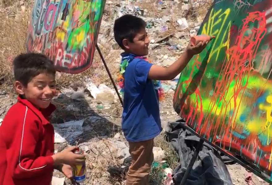 En el tiradero de basura Neza III se colocaron algunas caballetes con lienzo y pinturas en aerosol para que cualquiera pudiera expresar sus sentimientos o ideas a través del arte. Así fue como poco a poco varias personas se acercaron, en su mayoría con temor y luego con curiosidad hasta que pronto comenzaron a realizar sus trazos.