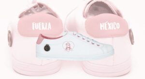 El diseño de este calzado se encuentra en tonalidad rosa con blanco, especialmente pensado para dama y en la parte posterior se puede leer la leyenda «Fuerza México». De esta manera la marca rindió homenaje a la perrita que ha robado más de un corazón y se ha convertido en un forma bastante creativa de solidarizarse.