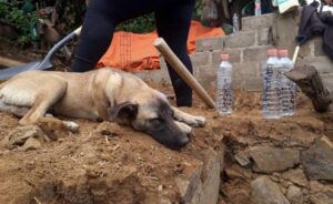 Por más que lo movíamos para seguir retirando los escombros regresaba y reposaba justo en el lugar donde su amo de 97 años de edad perdió la vida. Esta es la muestra más grande de amor y fidelidad de un perro a su amo. Comentó Manuel Rivera