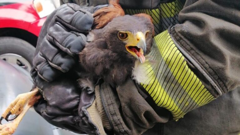 Rescatan águila que cayó en un patio en Tampico