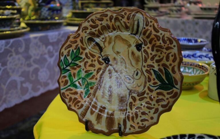 Reciben a jirafa Benito con platos de talavera en Puebla