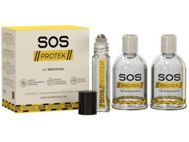 Por estas razones se creó un kit de protección llamado SOS Protek que cuenta con un gel antibacterial compuesto por alcohol etílico puro y un bactericida tópico para aplicarse en zonas cercanas a las vías respiratorias en donde generalmente se inicia el proceso de infección.