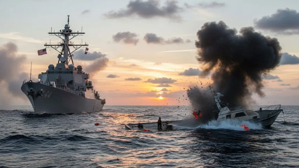 En este bombardeo murieron tres «narcoterroristas» venezolanos, afirmó en un mensaje acompañado de un video que muestra una lancha inmóvil con personas a bordo que explota en alta mar.