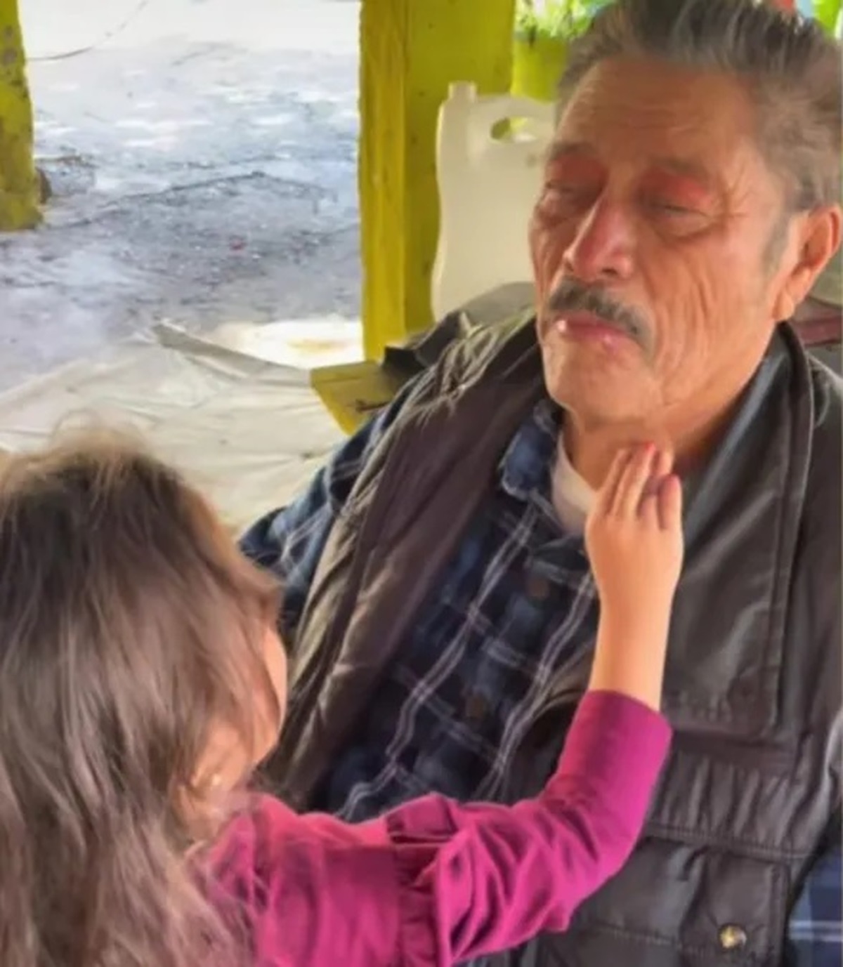 La sesión incluyó sombras rosas en sus párpados y brillo labial para un abuelo complaciente con su nieta demostrando que no le importaban las críticas o los señalamientos.