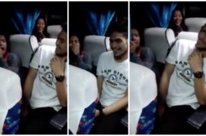 Sus compañeros la grabaron justo en el momento en el que el joven se sienta a su lado y tampoco sabe que hacer, la chica enamorada comienza a gritar y se tapa la cara con la cortina del autobús, ante tal euforia el chico solo se empezó a reír.
