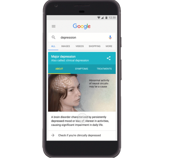 Ciudad de México, 24 Agosto.- A partir de hoy y de manera automática, cada vez que un usuario de algún smartphone busque en Google la palabra «depresión» o «depresión clínica», aparecerá un test PHQ-9 que ayudará a valorar si el internauta padece este mal.