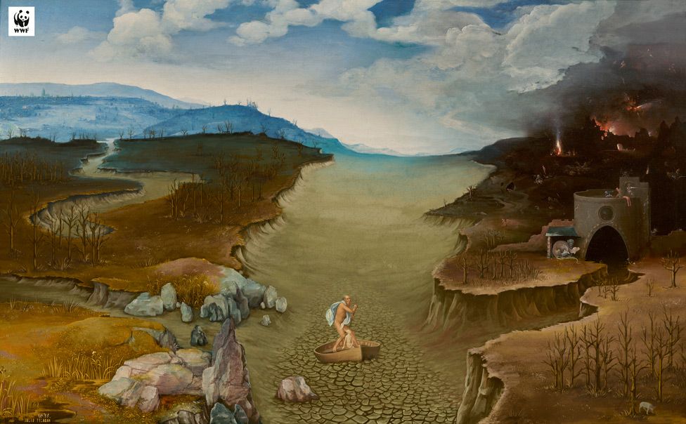 Ciudad de México, 5 diciembre.- A propósito de la Cumbre del Clima que desarrolla en Madrid, el Museo Nacional del Prado y WWF decidieron unir esfuerzos para intervenir cuatro de las obras más representativas de la colección permanente de ese recinto, para alertar sobre las consecuencias del cambio climático en la Tierra.