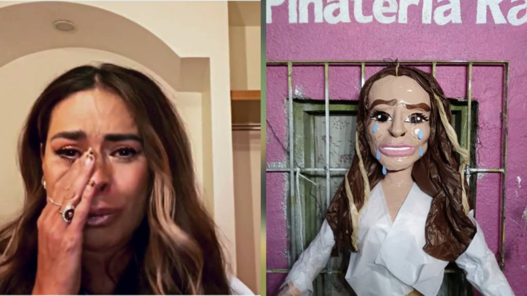La piñata hace referencia a un video en el que la conductora del programa Hoy, en medio de lágrimas, externó que se sentía cansada de que los medios de comunicación, algunos periodistas de espectáculos y público en general la están atacando de manera constante y contundente.