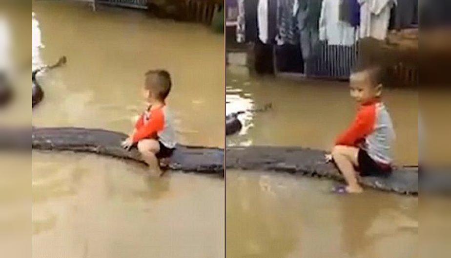La serpiente no ataca, ni huye del niño de solo 3 años, de acuerdo a Daily Mail la tía del infante dijo que no lo agrade porque el reptil es una mascota de la familia.