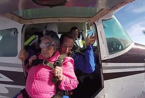 Eila Campbell se lanza de paracaídas a sus 94 años